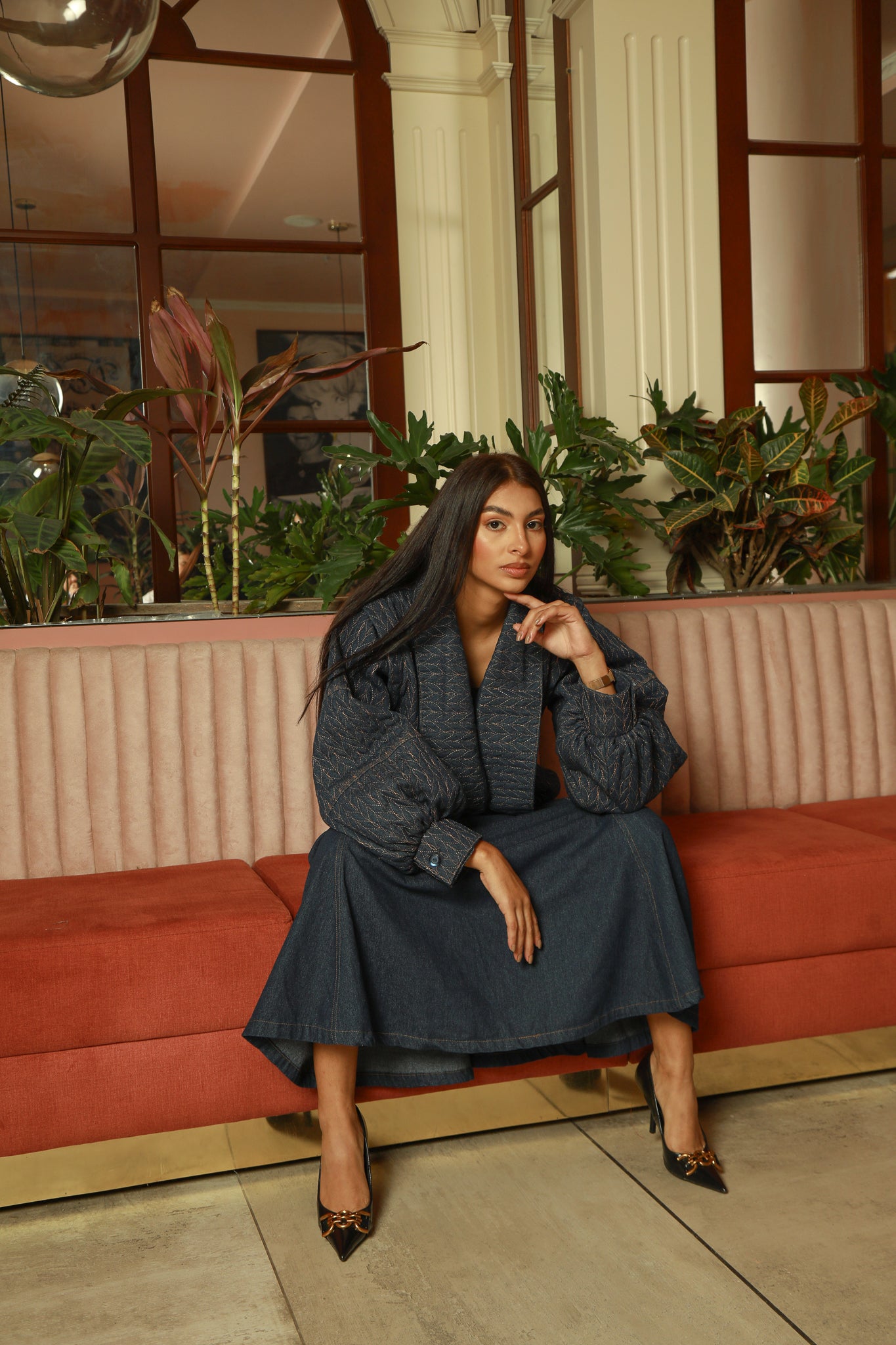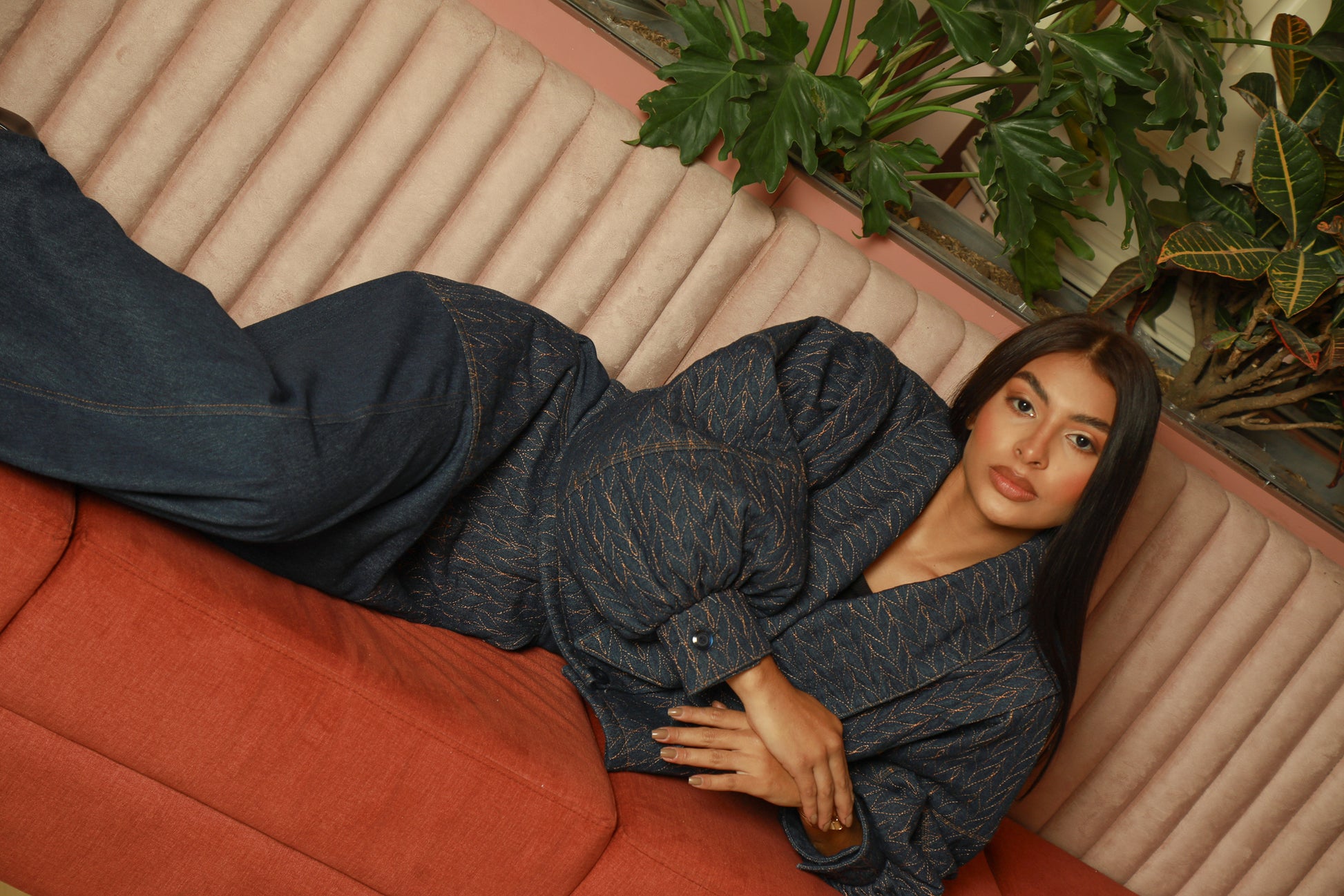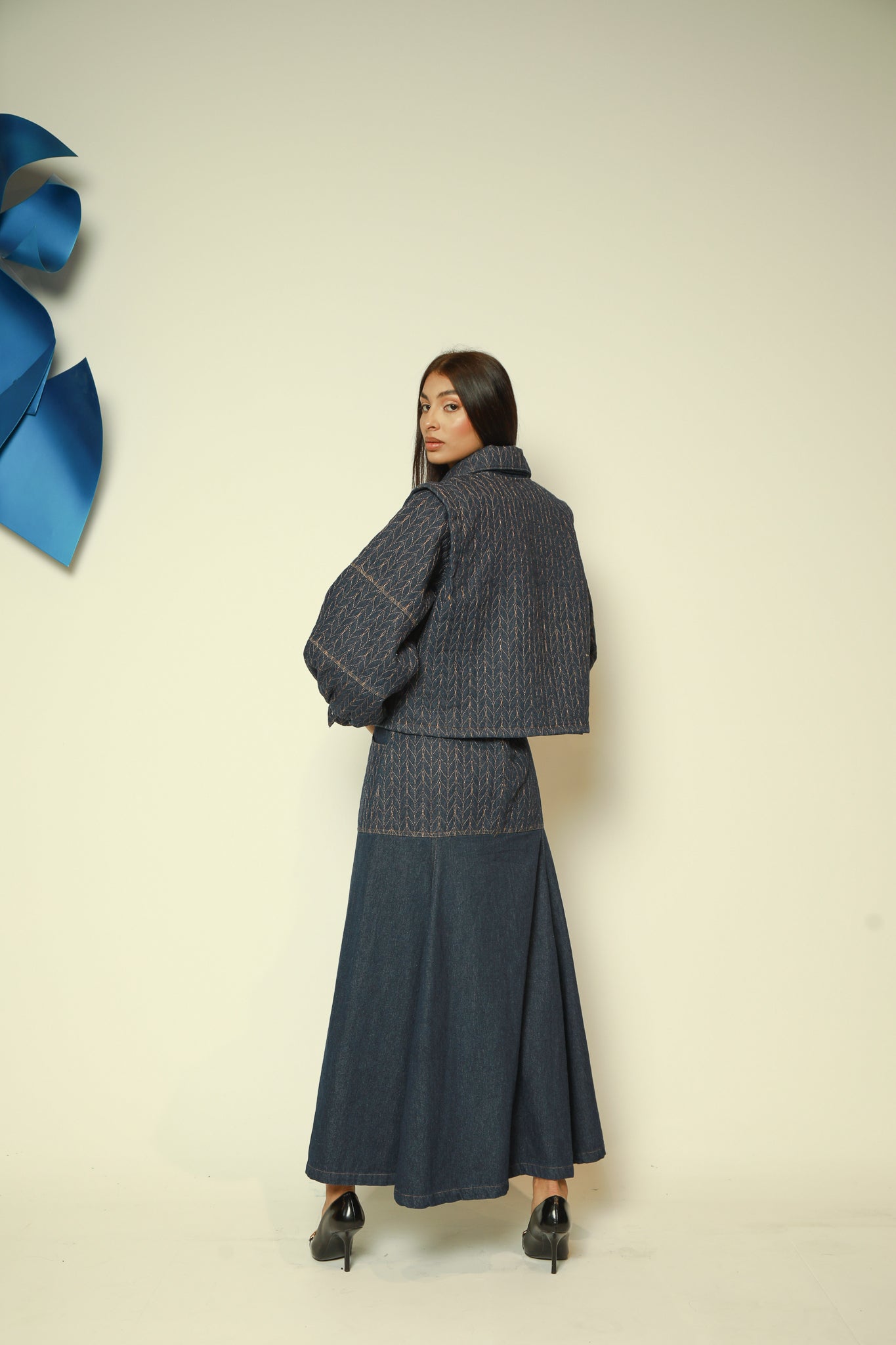 Chaqueta en denim bordada en hilo.