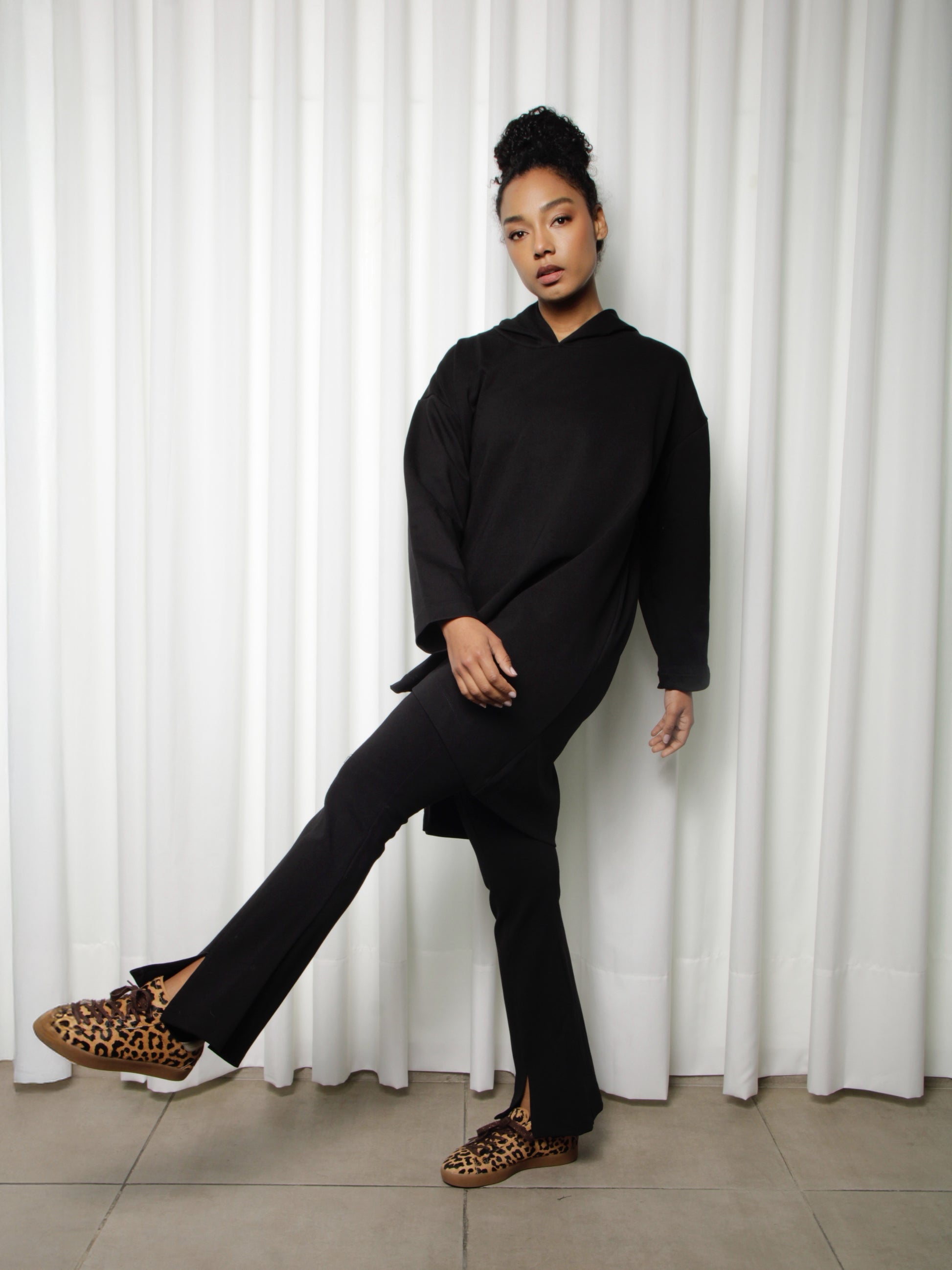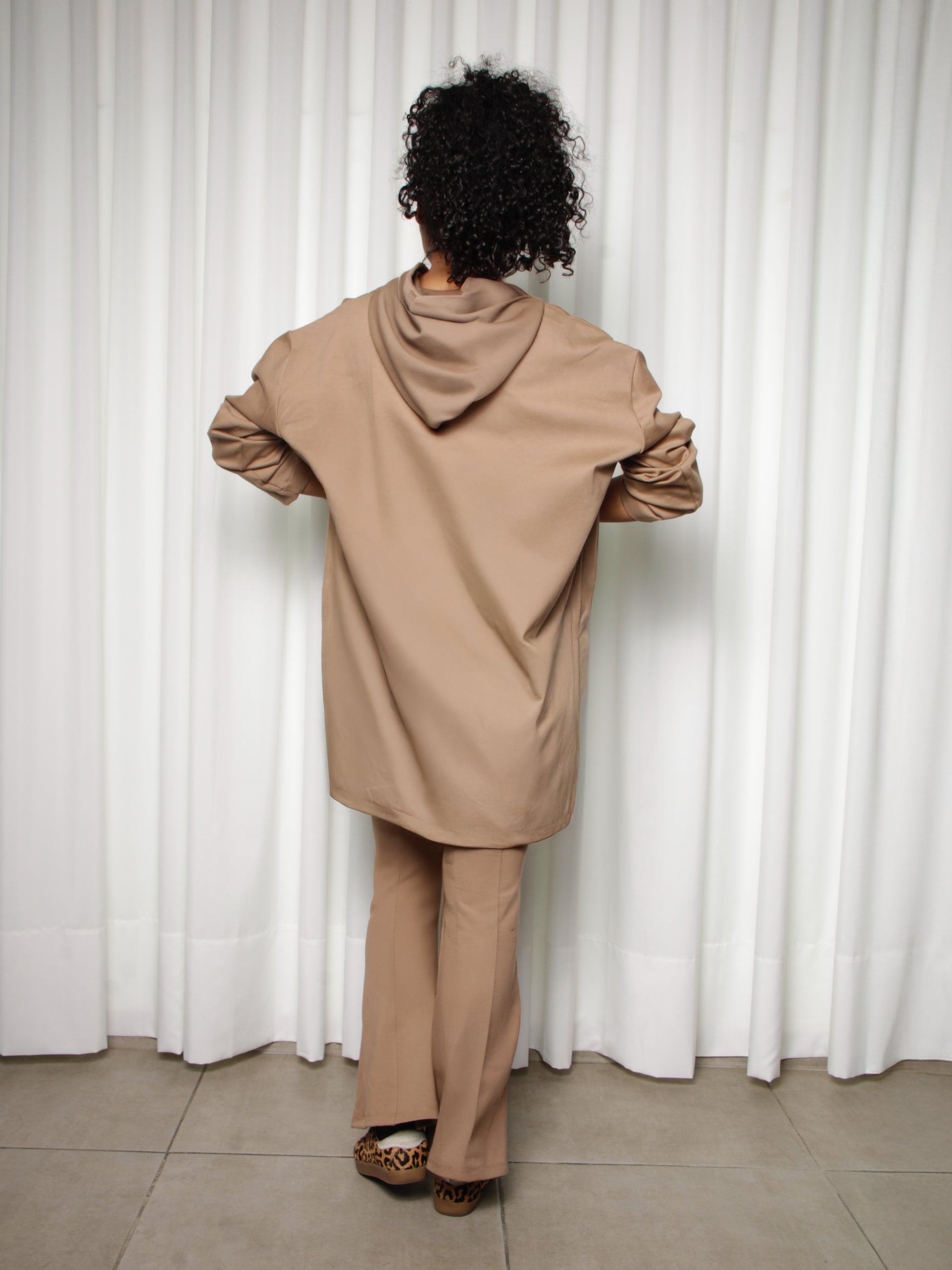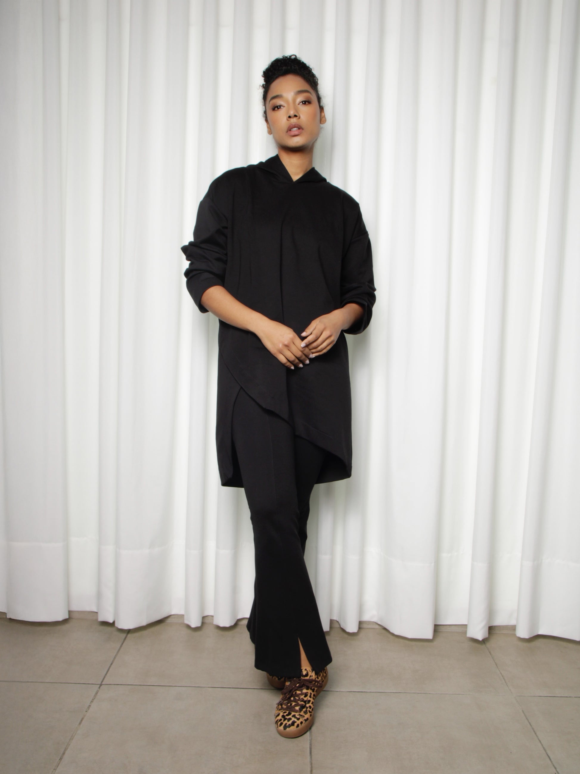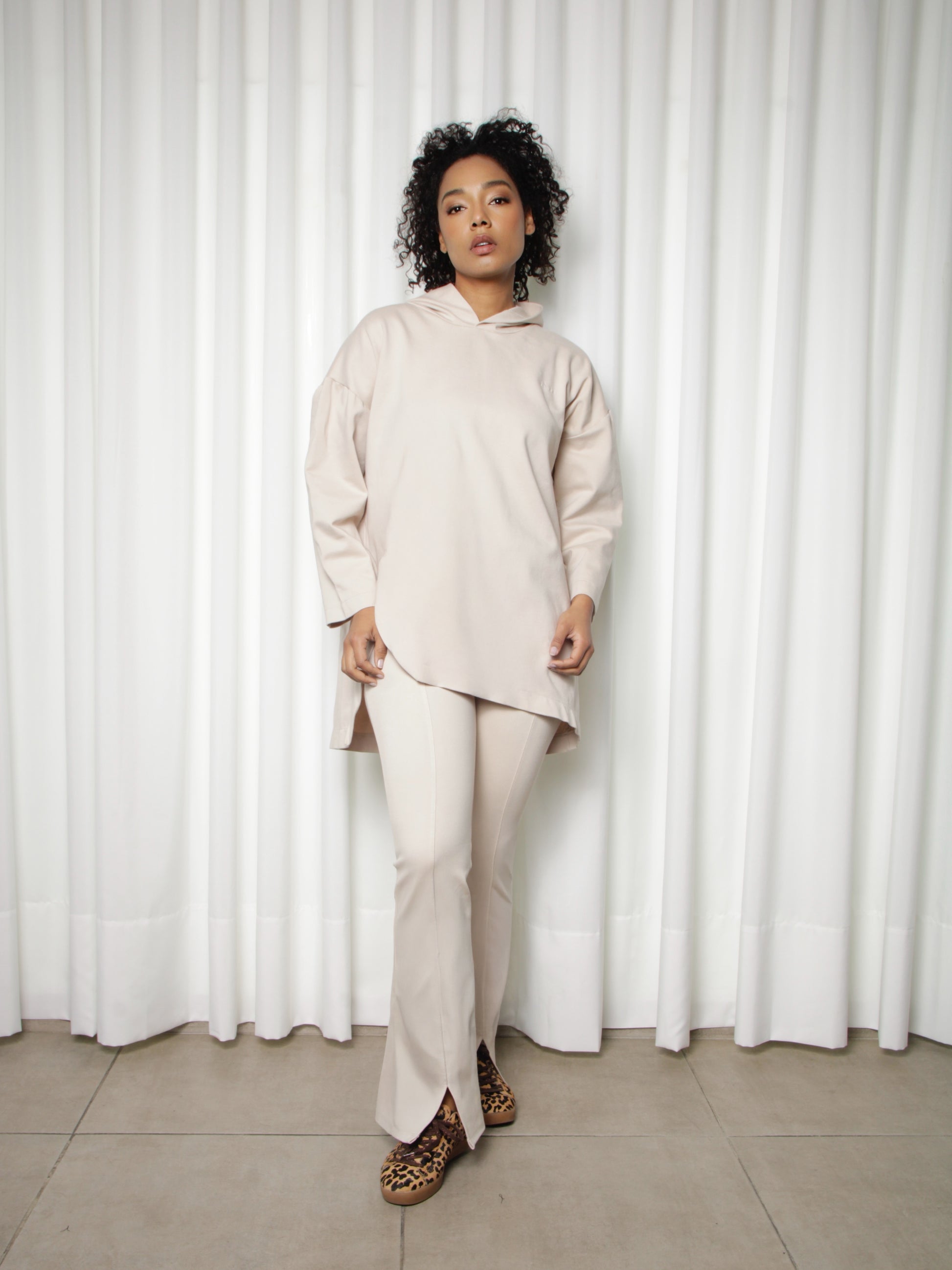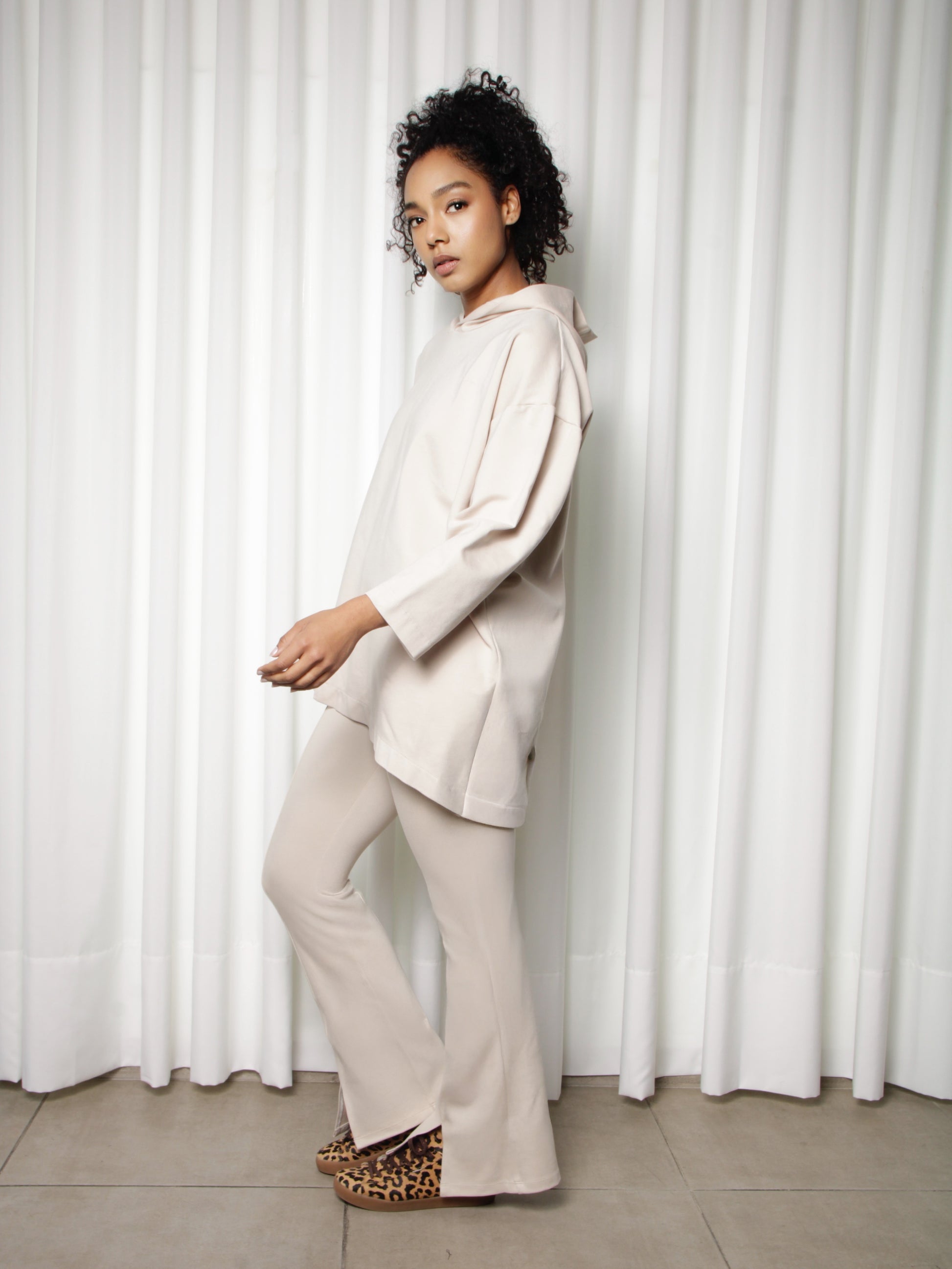 El Set Breath combina la modernidad del hoodie asimétrico largo con la silueta estilizada de los leggings bota flare. El resultado es un look que equilibra comodidad y sofisticación, ideal para mujeres que buscan piezas versátiles que fluyen con su rutina diaria. El punto roma aporta estructura y suavidad, garantizando confort sin perder elegancia. En la colección Nest, este set representa el estilo funcional y atemporal que trasciende tendencias, convirtiéndose en un imprescindible del clóset.